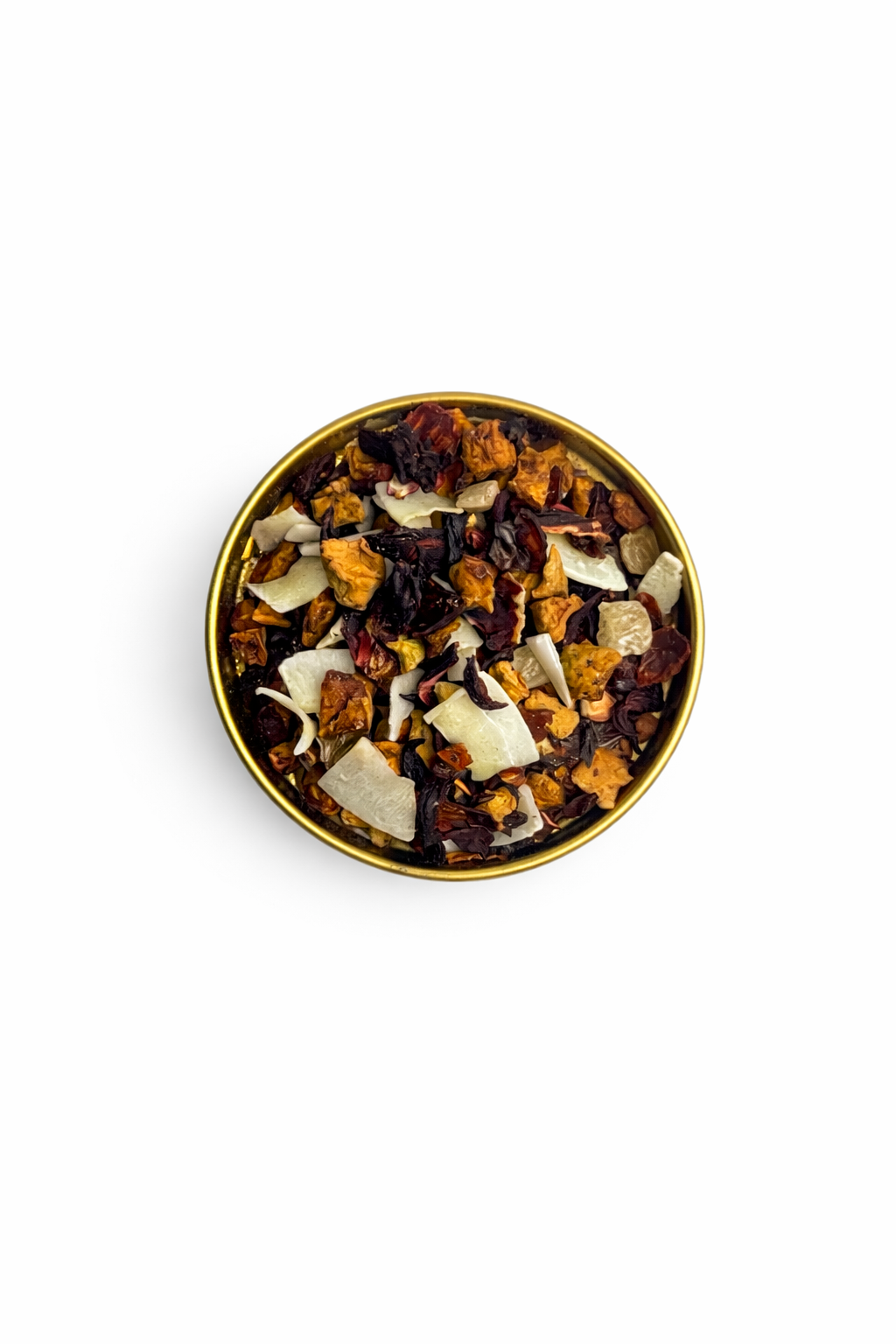 Яблоко, ананас (ананас, сахар) (21%), кокос (кокос, кокосовое масло, сахар), гибискус, шиповник, апельсиновая цедра, ароматизатор.